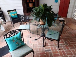 Five piece heavy scrolled wrought iron patio furniture, heavy wicker furniture