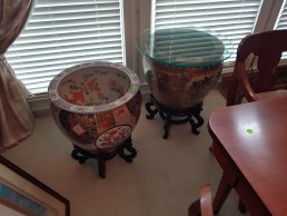 RARITIES TO INCLUDE: 1940’S HAND CARVED CHILDS ROCKING HORSE. OVER 10 HAND PAINTED LARGE CHINESE HAND PAINTED URNS AND PLANTERS